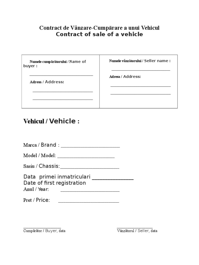 Obiectul prezentului contract consta in furnizarea in schimbul unui preţ stabilit in mod ferm de către parţi in cele de mai jos a articolelor de. Contract de vanzare cumparare auto pdf. Din pacate nu gasesc nimic pe internet.