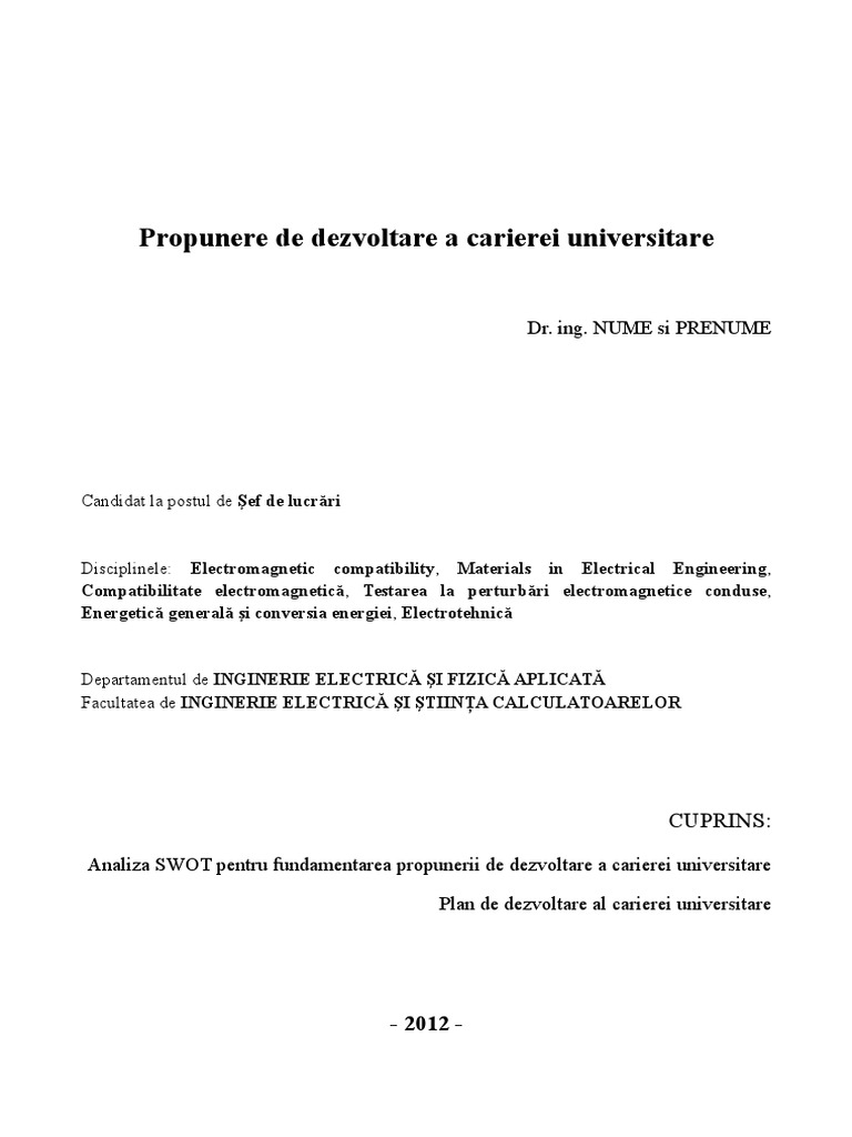 Propunere de dezvoltare a carierei universitare.