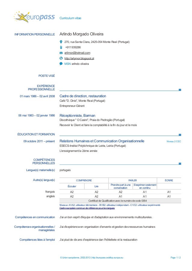Cv europass disponível para baixar em word e válido em toda a união europeia. Elle concerne l'ensemble des compétences personnelles. Home » curriculum vitae » exemple de cv europass complet.