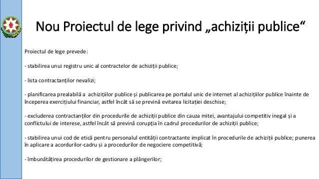 Legea achiziţiilor publice reglementează modul de realizare a achiziţiilor publice, procedurile de atribuire a contractelor de achiziţie publică şi de organizare a 114/2020 privind modificarea şi completarea unor acte normative cu impact în domeniul achiziţiilor publice. (6) prezenta lege se aplică în modul corespunzător în cazul organizării concursului de soluţii şi încheierii. Legea achiziţiilor publice, modificată de guvern.